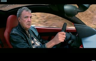 Richard Hammond and James May are playing darts by shooting cars. Top Gear, S04E04.